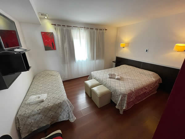 Disponen baño privado completo, secador de pelo y cómodos sommier. Además cuentan con climatización central (frío / calor) para que puedas disfrutar de un clima agradable en cualquier época del año. Disponen de teléfono, televisión por cable y caja de seguridad para sus objetos de valor. Para una cómoda estadía, ofrecemos servicio de mucama diario y recepción las 24 horas.